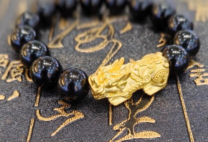 Pixiu (Pi Yao) is a mythical creature known for attracting wealth and warding off evil spirits. Wearing Pixiu jewelry is believed to bring prosperity.
