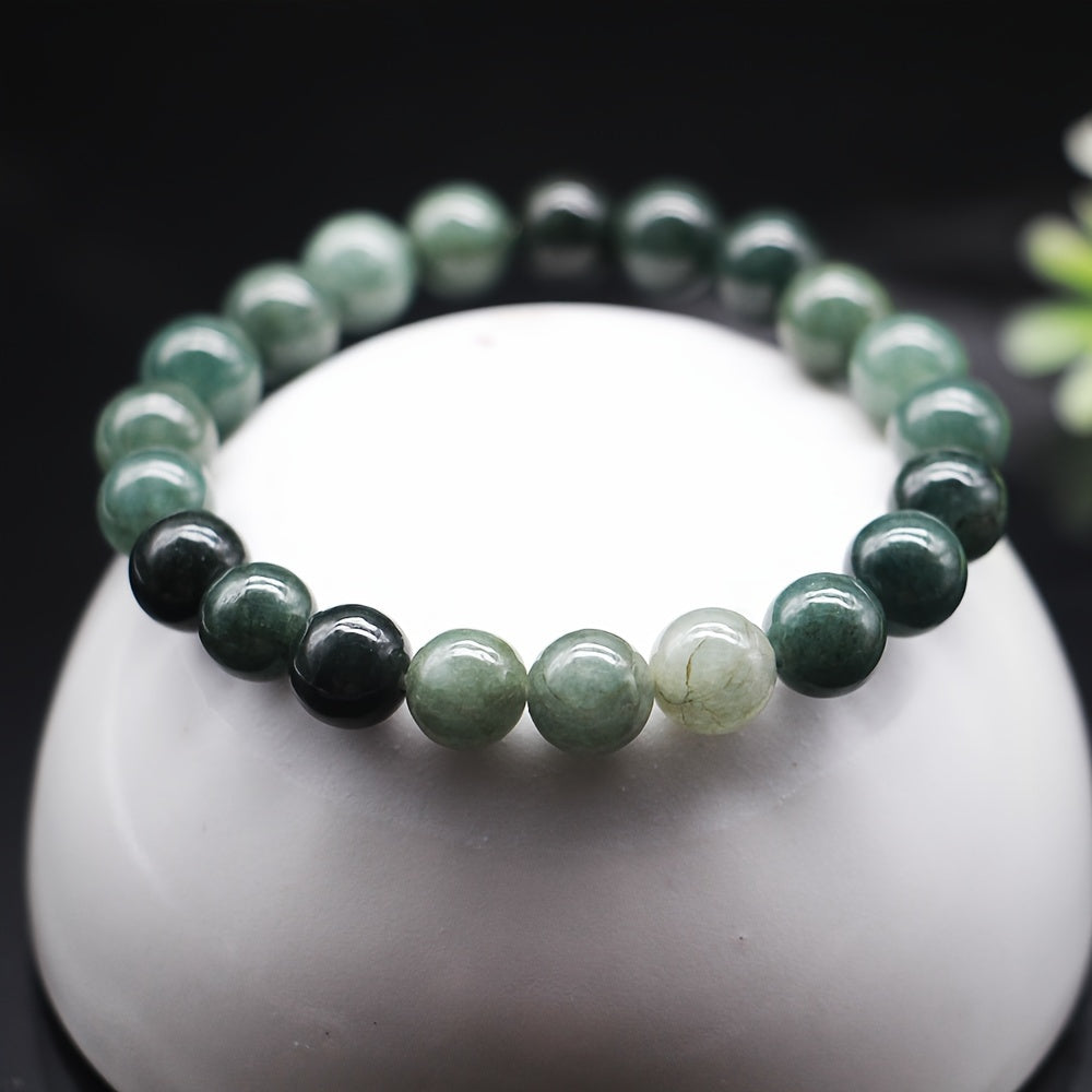 The deep green color promotes grounding and stability, while the jade material enhances mindfulness and spiritual connection. Together, they create a harmonious balance of energetic properties, ideal for daily wear or meditation.