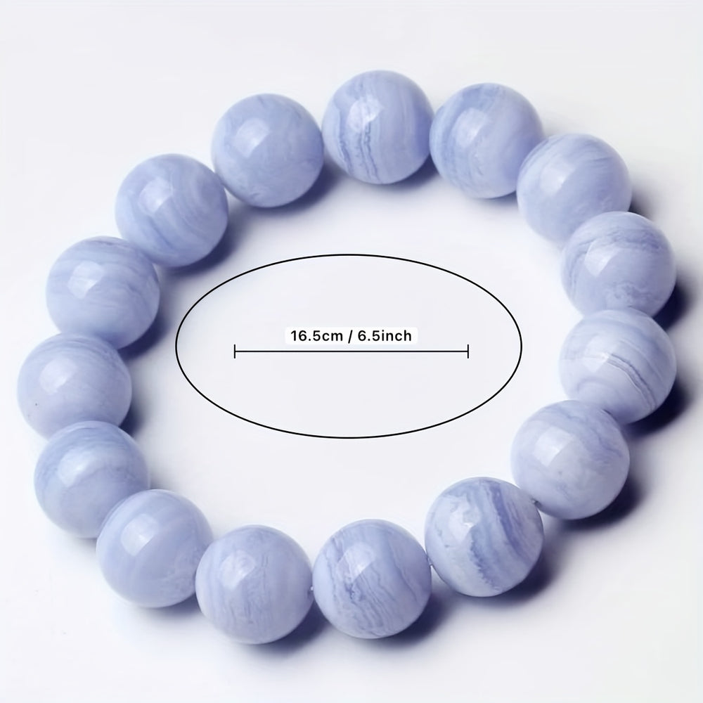 This 12mm blue agate bracelet radiates calming energy that enhances harmony and protection. The 16.5cm length ensures comfortable wear for most wrists, making it perfect for daily wear or special occasions like Mother's Day gifts.