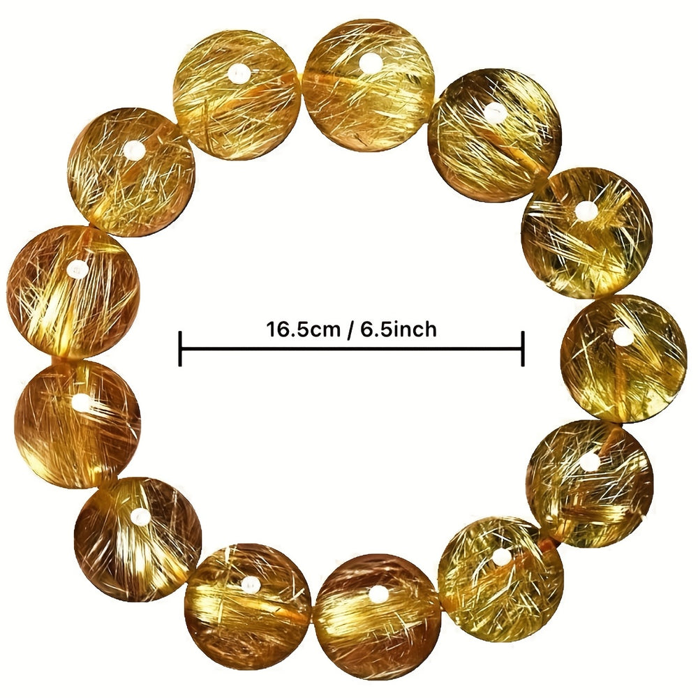 This natural golden citrine bracelet features 12mm translucent yellow crystal beads in a retro style design. The combination of golden hues and smooth polished surface creates an elegant accessory that symbolizes positive energy, prosperity, and harmony, perfect for couples or special occasions.