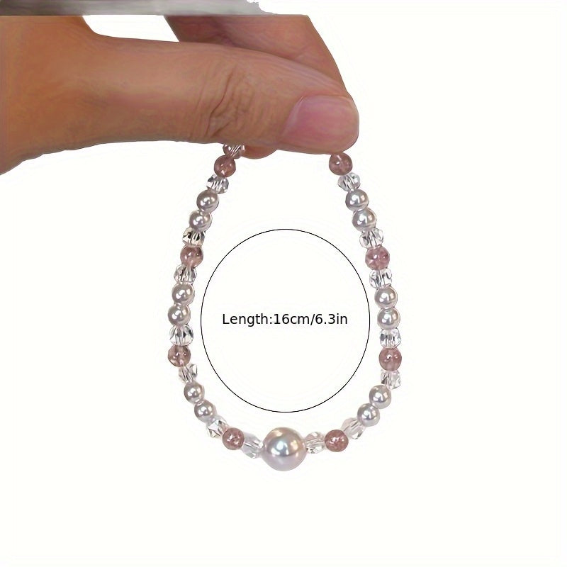 This sweet & chic bracelet features pink acrylic beads with white pearl accents and clear crystal beads. The combination of pink's love energy and white's purity creates an elegant accessory perfect for daily wear, sports, or any casual occasion.