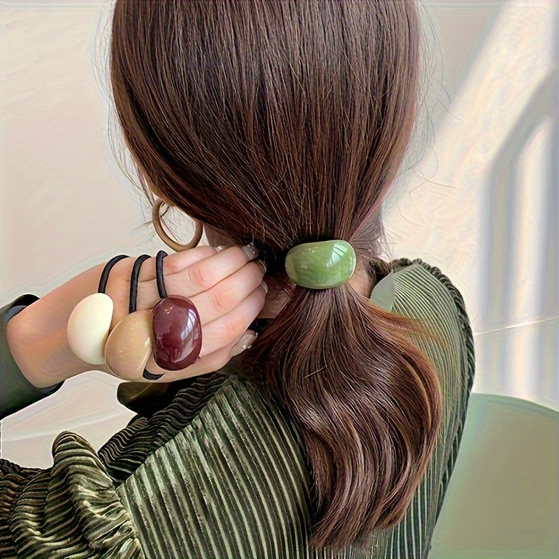 This mixed color hair ties set combines French minimalist elegance with high elasticity for comfortable all-day wear. The pebble-shaped decorative elements in off-white and light gold create a sophisticated look perfect for any occasion.