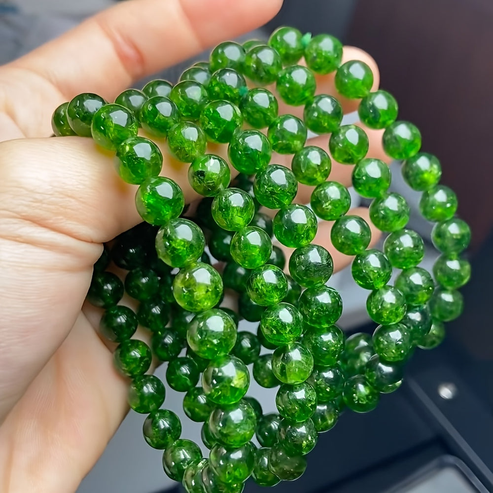The green hues symbolize growth, harmony, and natural energy, making this bracelet ideal for spiritual protection jewelry. The circular beads represent eternity and completeness, while the high-quality craftsmanship ensures durability and lasting beauty.