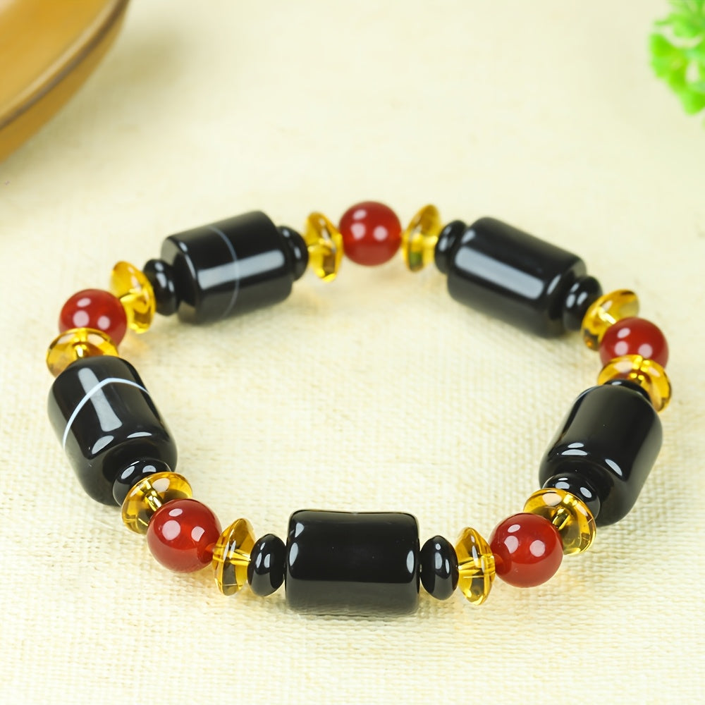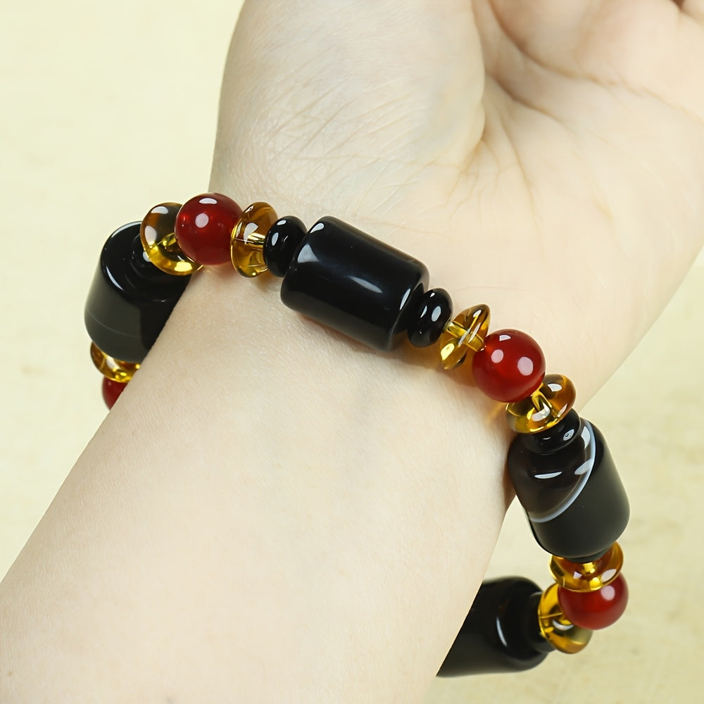 Embrace ancient power and masculine elegance with our 9-Eye Agate Pendant Necklace for Men. This striking piece features a central tube bead of authentic 9-Eye Agate, a revered Dzi bead known for its potent protective and purifying energies. Complemented by vibrant Red Agate and warm amber-colored beads, this necklace is designed as a powerful talisman for the modern man. Its vintage-inspired, simple design makes it a versatile accessory for both casual and formal wear, offering both style and spiritual support.