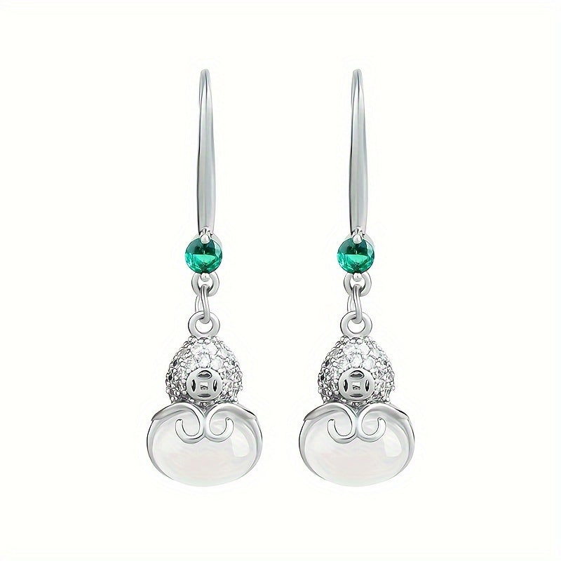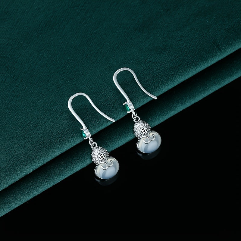 These 925 silver plated jade gourd earrings feature Chinese vacation style with imitation jade synthetic stones. The gourd shape symbolizes abundance and prosperity, making them perfect for January birthstones and Independence Day celebrations.