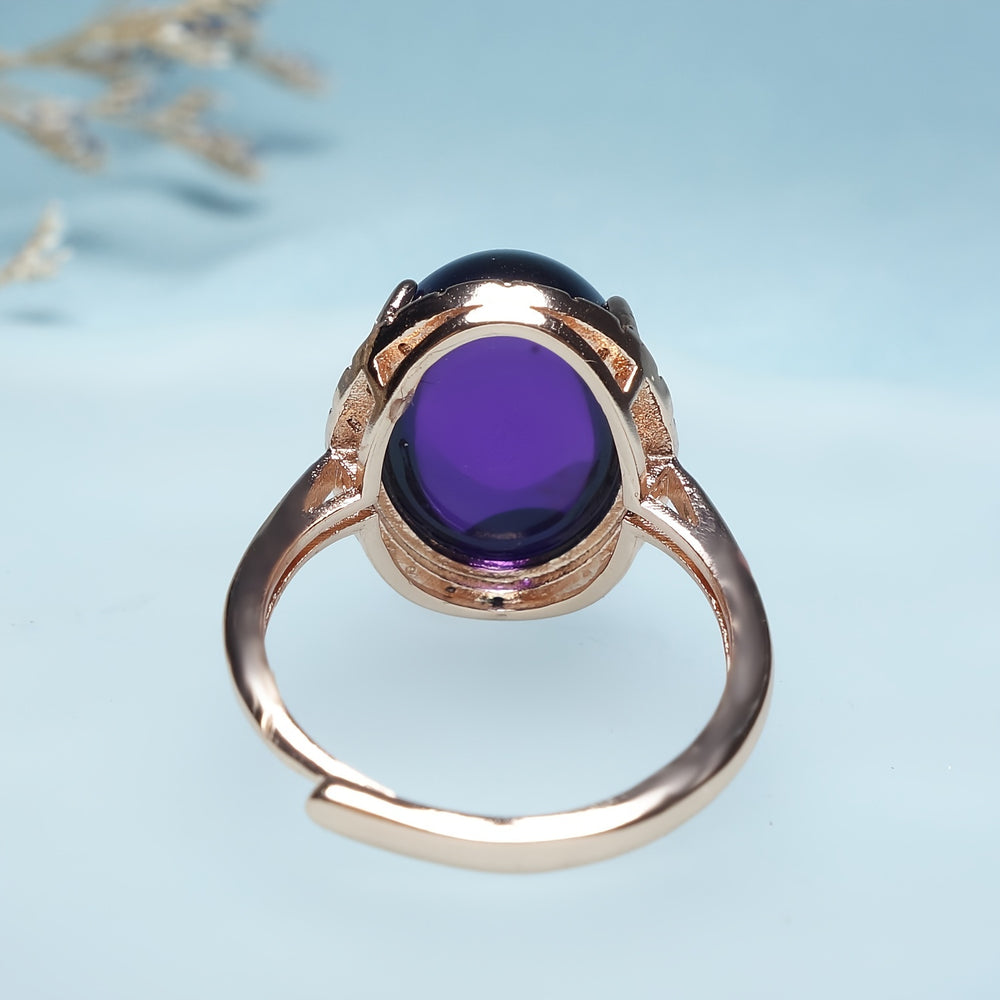 “The adjustable design and deep purple hue make this ring perfect for modern wearers, adding a touch of elegance and protective energy to any outfit.”