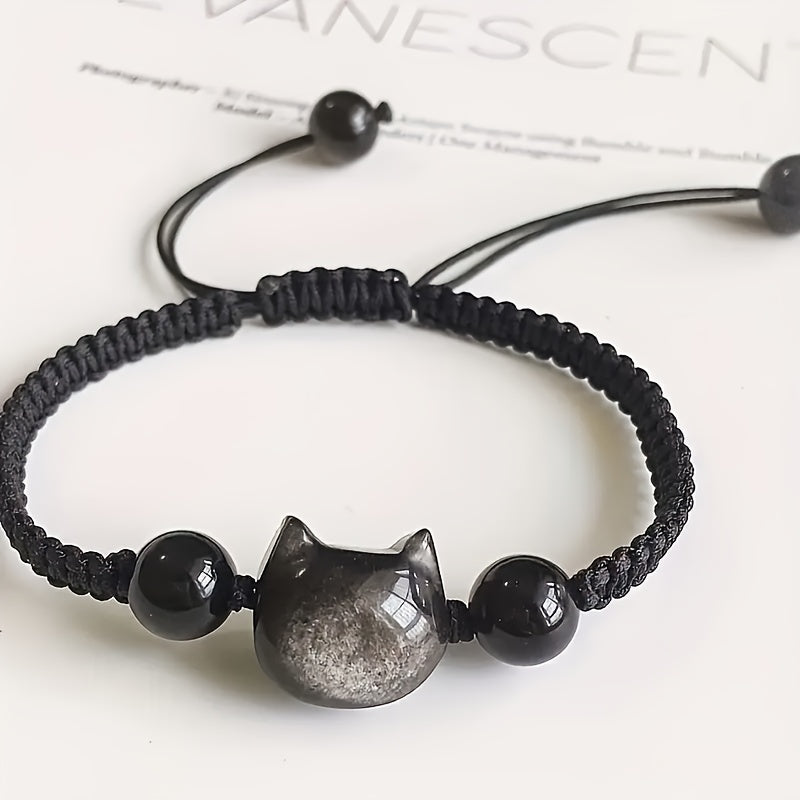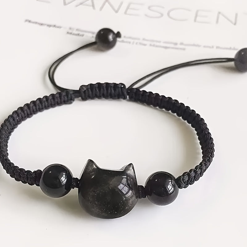 The black beads represent protection and mystery, while the red beads symbolize passion and vitality. The cat charm embodies intuition and spiritual protection, making it both a fashionable accessory and a meaningful protective talisman.
