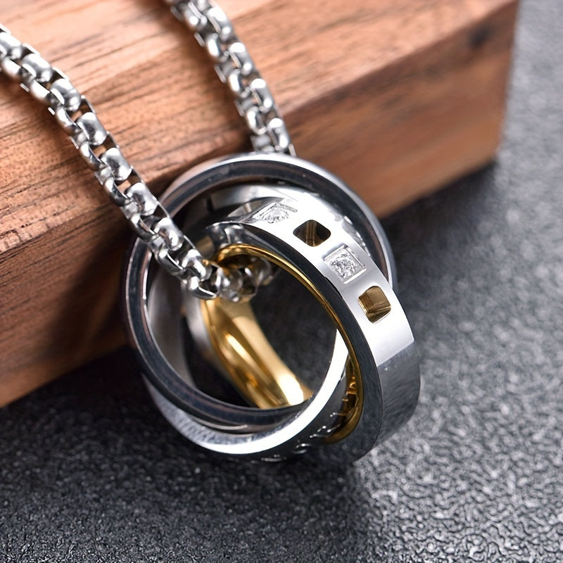 “Stainless steel jewelry is experiencing a renaissance, with this three-ring necklace leading the trend for durable yet stylish mens accessories.”