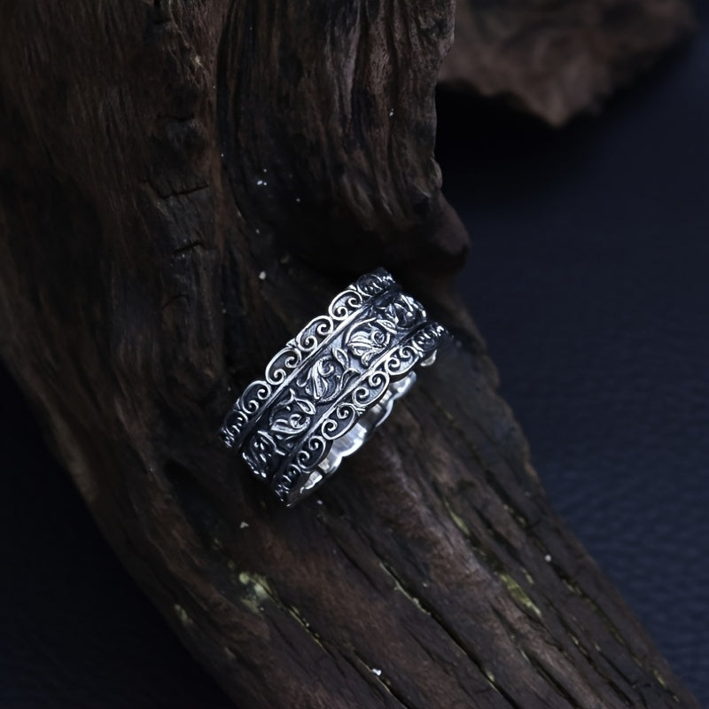 The ancient scroll pattern represents wisdom, protection, and the unfolding of divine plans. In many cultures, scrolls symbolize the connection to ancient wisdom and spiritual growth, making this ring an excellent spiritual meaning of scrolls piece. The antique copper material adds layers of protection and grounding energy, creating a powerful symbol of viking jewelry for strength.
