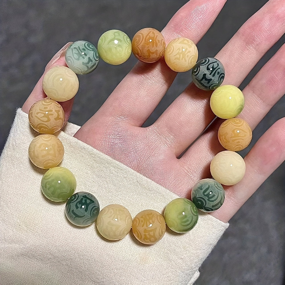 “The earthy tones and smooth texture make this bracelet perfect for casual elegance and spiritual connection.”