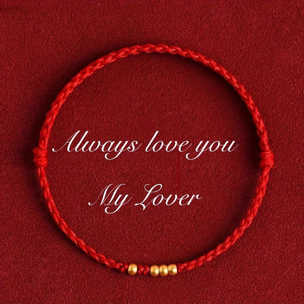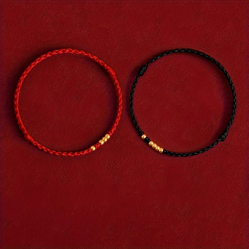 This bohemian red cord bracelet combines minimalist design with spiritual energy. The black woven cord represents grounding and simplicity, while the golden beads symbolize wealth and positive energy flow. Perfect for daily wear or as a meaningful gift for couples, BFFs, or any occasion.