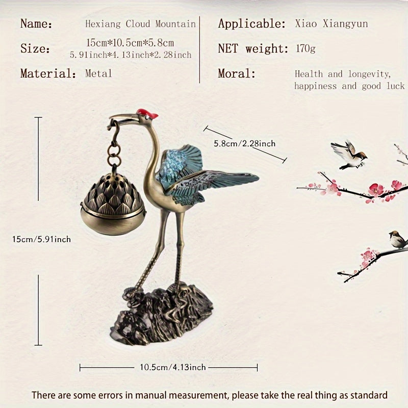 The crane represents health, longevity, and good luck in Chinese culture, while the swirling smoke design symbolizes the flow of positive energy and spiritual connection. The lotus-shaped burner enhances purity and spiritual growth, creating a powerful combination of symbolic meaning and functional design.