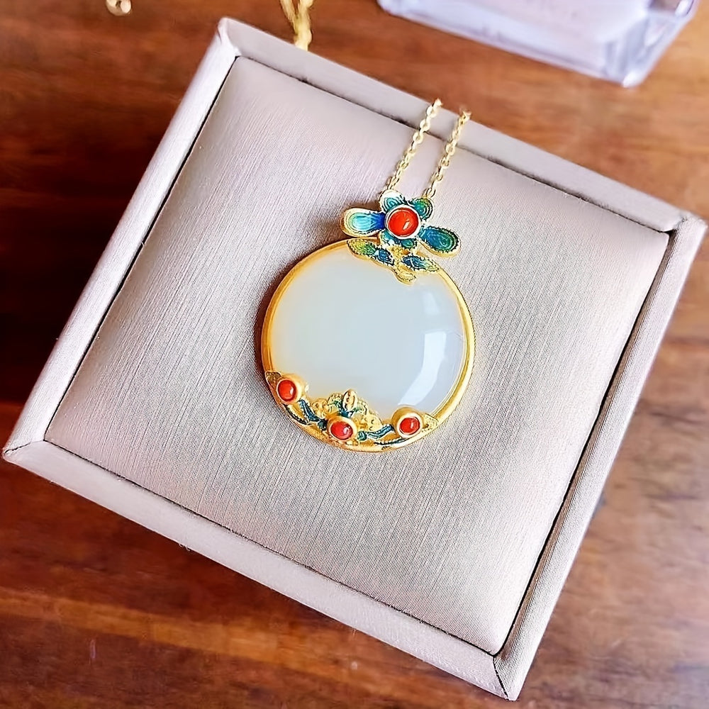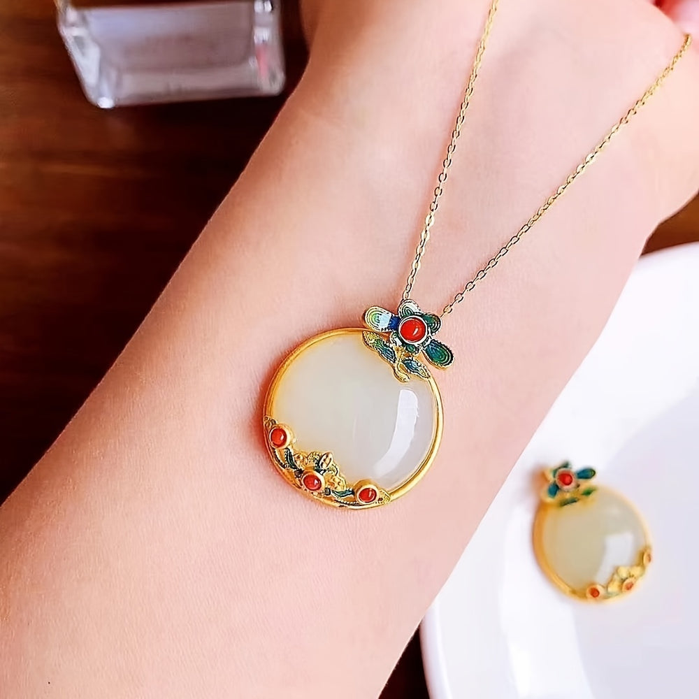 The pendant's design harmoniously blends natural and crafted elements. The smooth, cool jade rests against the skin, providing a constant flow of calming energy, while the intricate enamel work and polished gold-plated frame add a touch of timeless sophistication. It is perfect for daily wear as a personal reminder of your spiritual path, for use during meditation to deepen your practice, or as a deeply meaningful gift for a loved one seeking peace and wisdom.