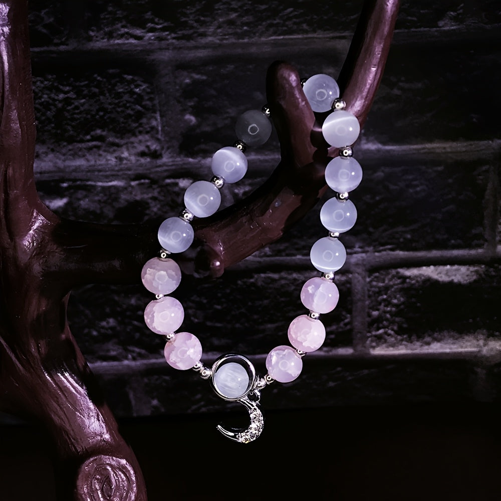 This Elegant Chinese Style Cat's Eye & Moonstone Bracelet features beautiful artificial crystal beads in soft pastel hues. The bracelet combines the mystical properties of cat's eye stone with the gentle energy of moonstone, creating a powerful talisman for intuition, protection, and emotional balance. Perfect as a Valentine's Day gift or personal accessory for daily wear and special occasions.
