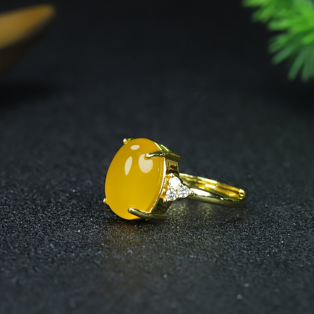 The ring's warm yellow stone and intricate design capture the essence of joy and vitality. The adjustable "live ring" style ensures a comfortable, perfect fit, while the gold-plated setting adds a touch of luxury. This ring is more than just jewelry; it's a wearable tool for grounding and a bold expression of classic style.