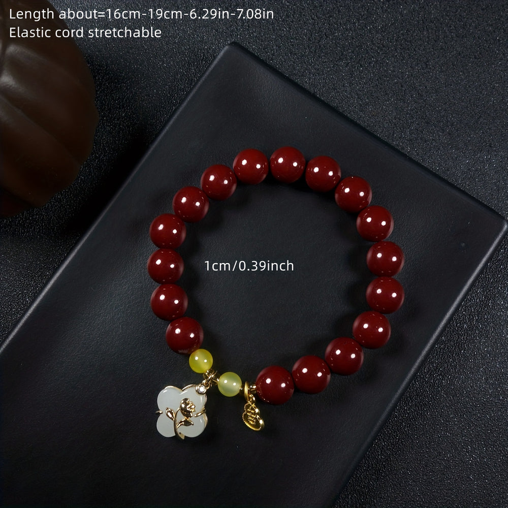 This bracelet is a fusion of intention and beauty. The cinnabar provides a strong, protective foundation, while the four-leaf flower actively draws in positive circumstances and fortunate events. Wearing it is an affirmation of your openness to receive life's blessings and your commitment to a path of positivity and joy.