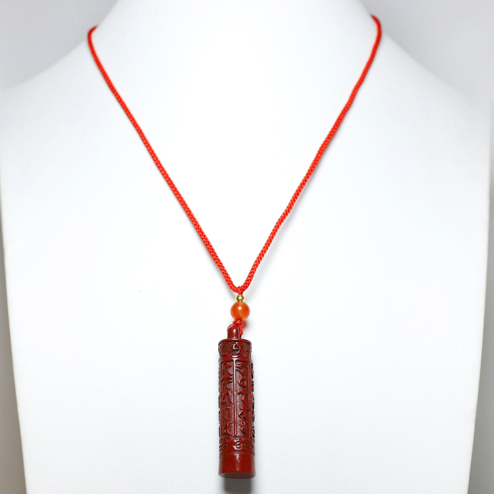 Embrace the sacred fusion of Tibetan Buddhist wisdom and Feng Shui prosperity principles with our Cinnabar Stone Carved Pendant. This exquisite talisman features the powerful Six True Word Mantra (Om Ma Ni Pad Me Hum) meticulously carved into genuine cinnabar stone, creating a wearable sanctuary of spiritual protection and abundance. Designed as a versatile unisex necklace, it serves as both a profound spiritual tool and an elegant fashion statement suitable for any occasion.