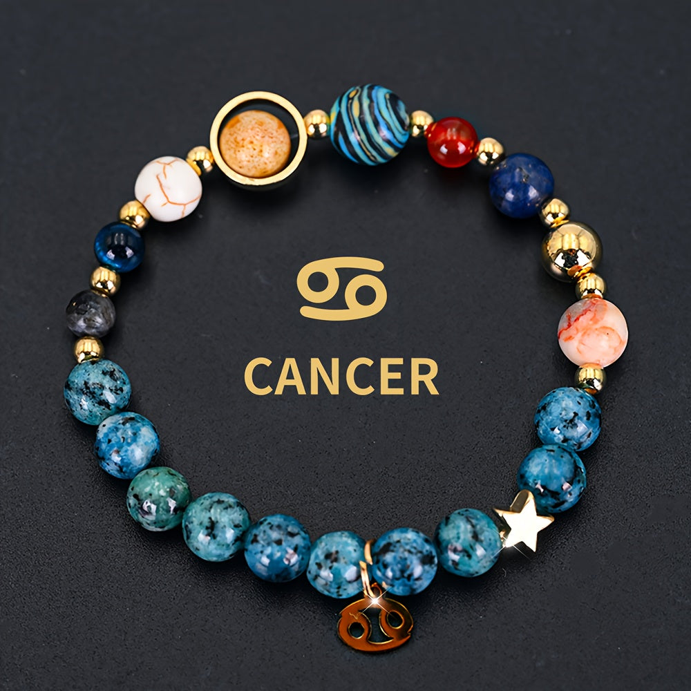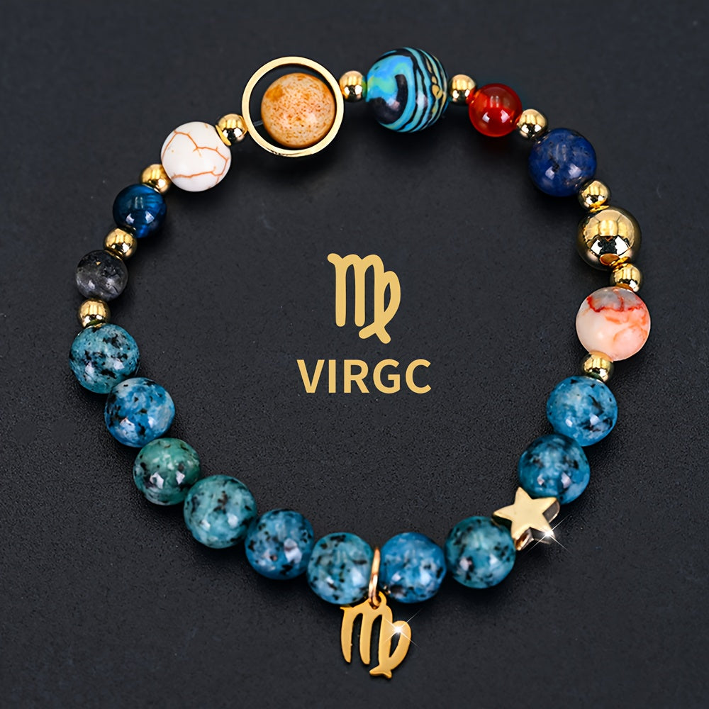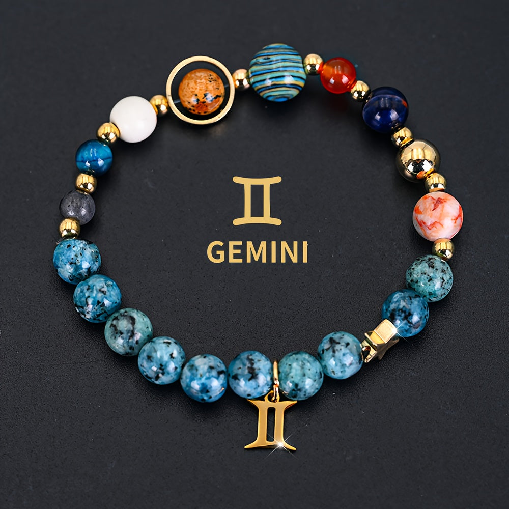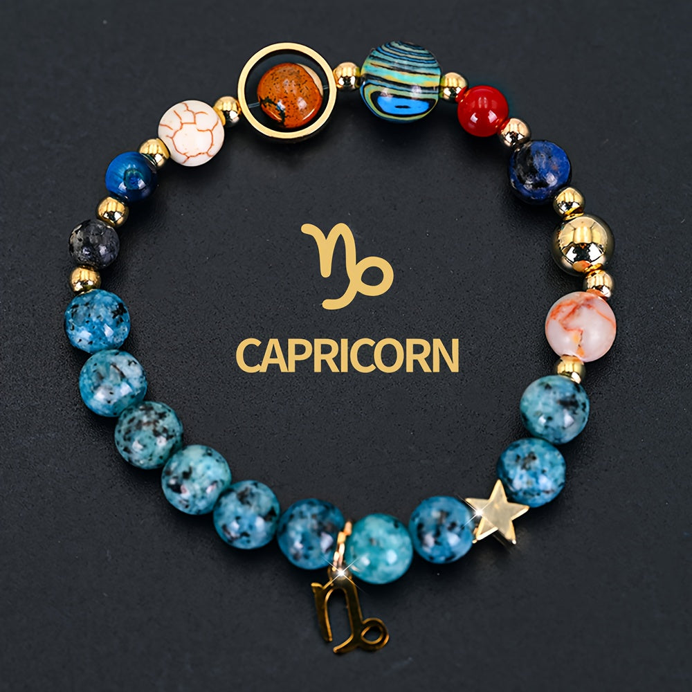 This Cosmic Galaxy Eight Planets Bracelet combines astronomical elements with astrological symbolism. The blue planetary beads promote calmness and cosmic connection, while the red accent beads add vitality and dynamic energy. The Aries zodiac pendant embodies courage and confidence.