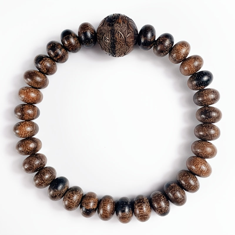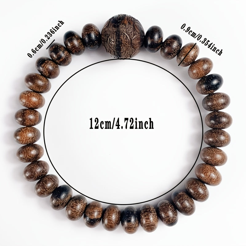 This elegant agarwood bracelet features natural wooden beads with carved details, perfect for all seasons and occasions. The deep brown color and smooth texture create a harmonious blend of spiritual energy and timeless style.
