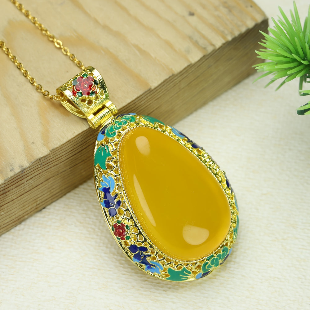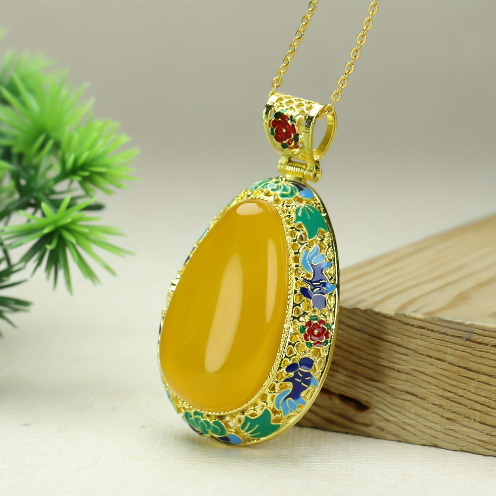 The golden agate represents harmony, prosperity, and protection in many cultures, while the floral motifs symbolize growth, beauty, and renewal. These elements combine to create a necklace that is not just a fashion accessory but also a meaningful spiritual symbolism tool.