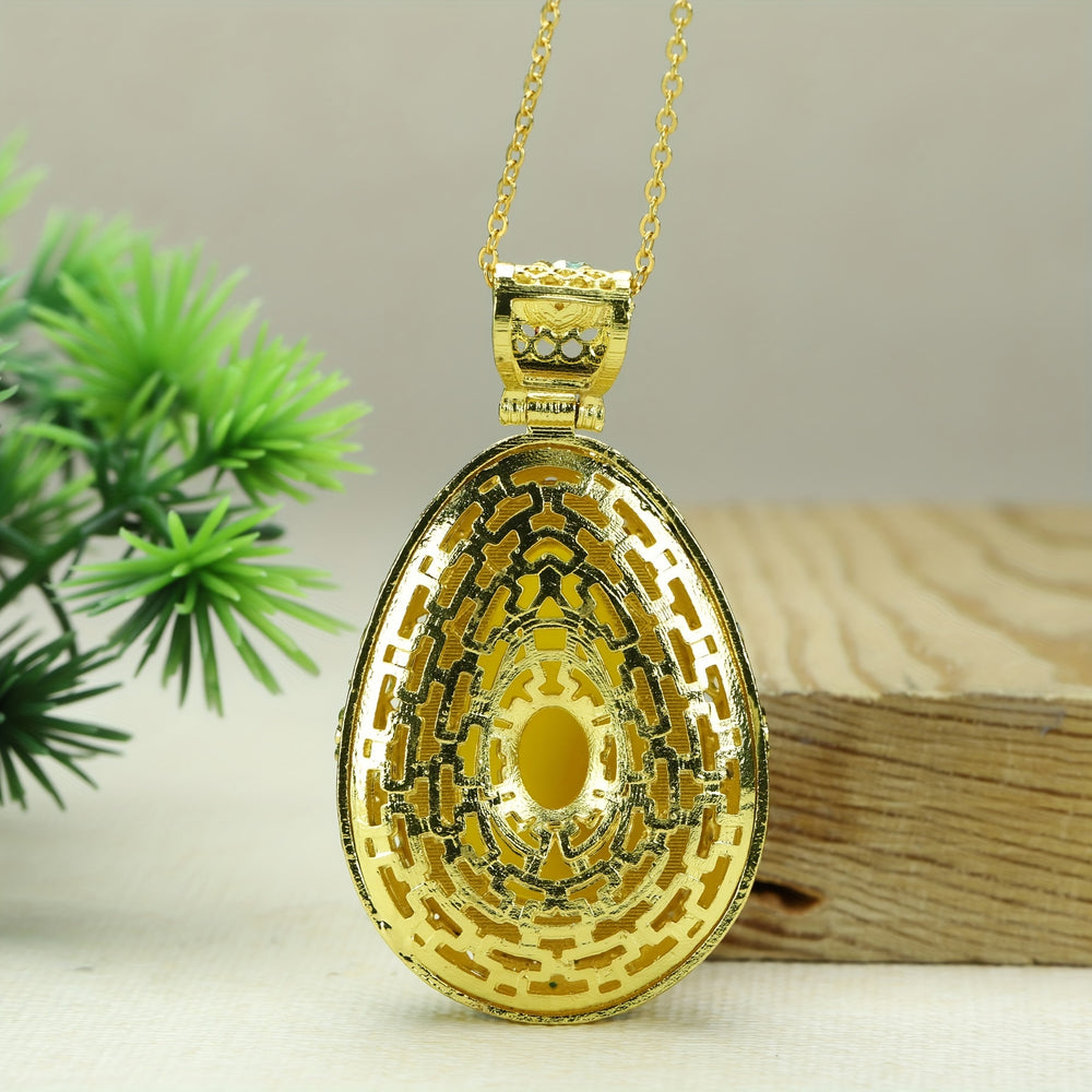This elegant golden agate necklace combines floral motif energy with vibrant yellow bead pendant. The gold-tone chain and agate create a luxurious look perfect for daily wear or gifting.