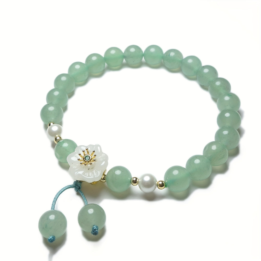 “The combination of natural materials and floral symbolism makes this bracelet a meaningful accessory for mindful living and positive energy.”