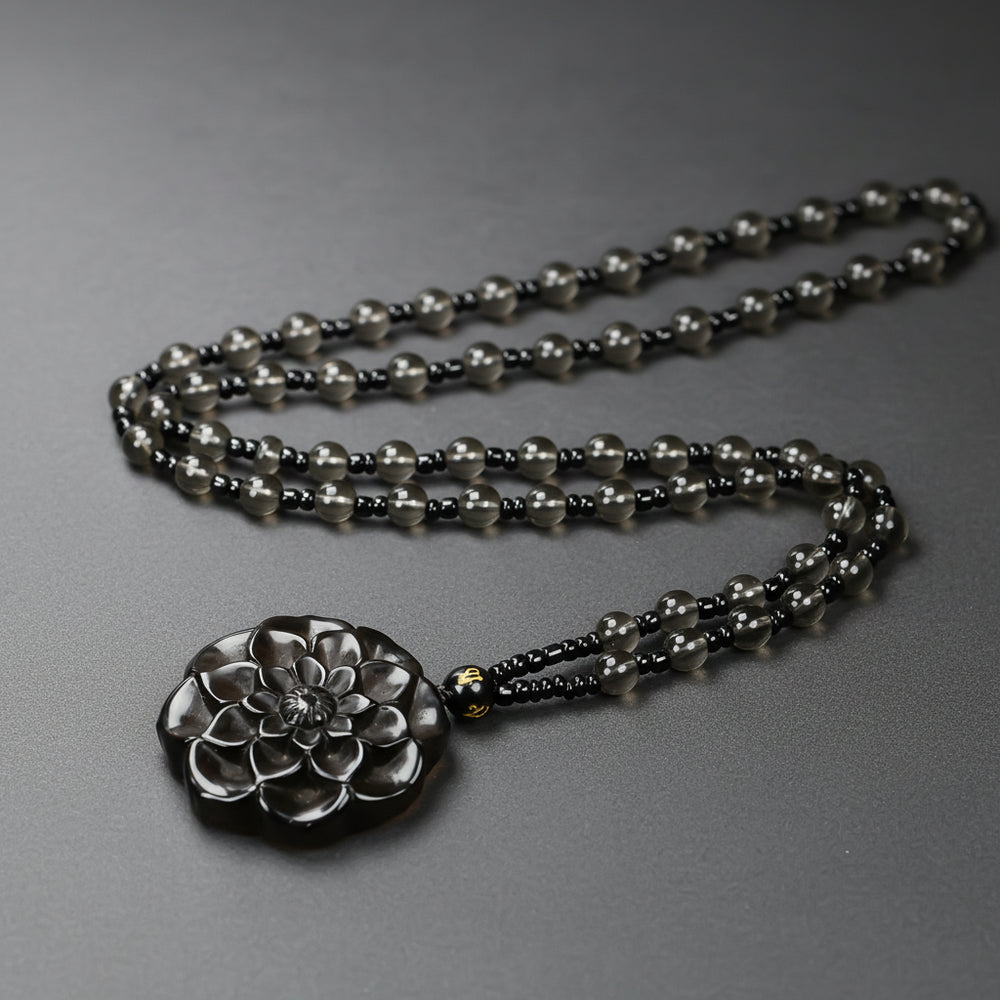 With its deep black hue and intricate detailing, this pendant serves as both a statement accessory and a powerful spiritual tool. The contrast between the organic rose form and the protective properties of obsidian creates a harmonious balance between aesthetic beauty and energetic function, making it a versatile addition to any jewelry collection for daily wear or special occasions.
