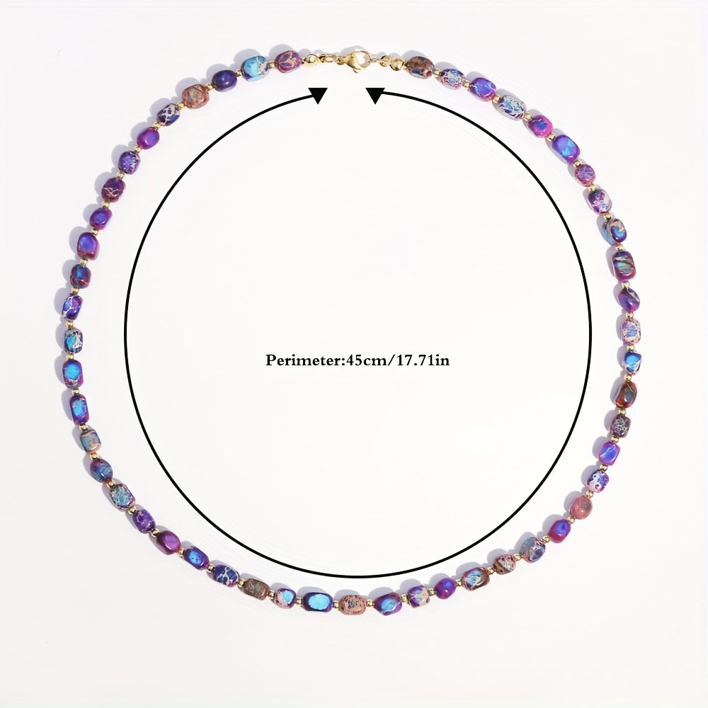 This elegant punk necklace combines natural emperor stone beads in purple, blue, and pink hues with colorful in a handcrafted design. Inspired by punk elegance and natural beauty, it creates a unique piece that supports mindfulness and spiritual connection.