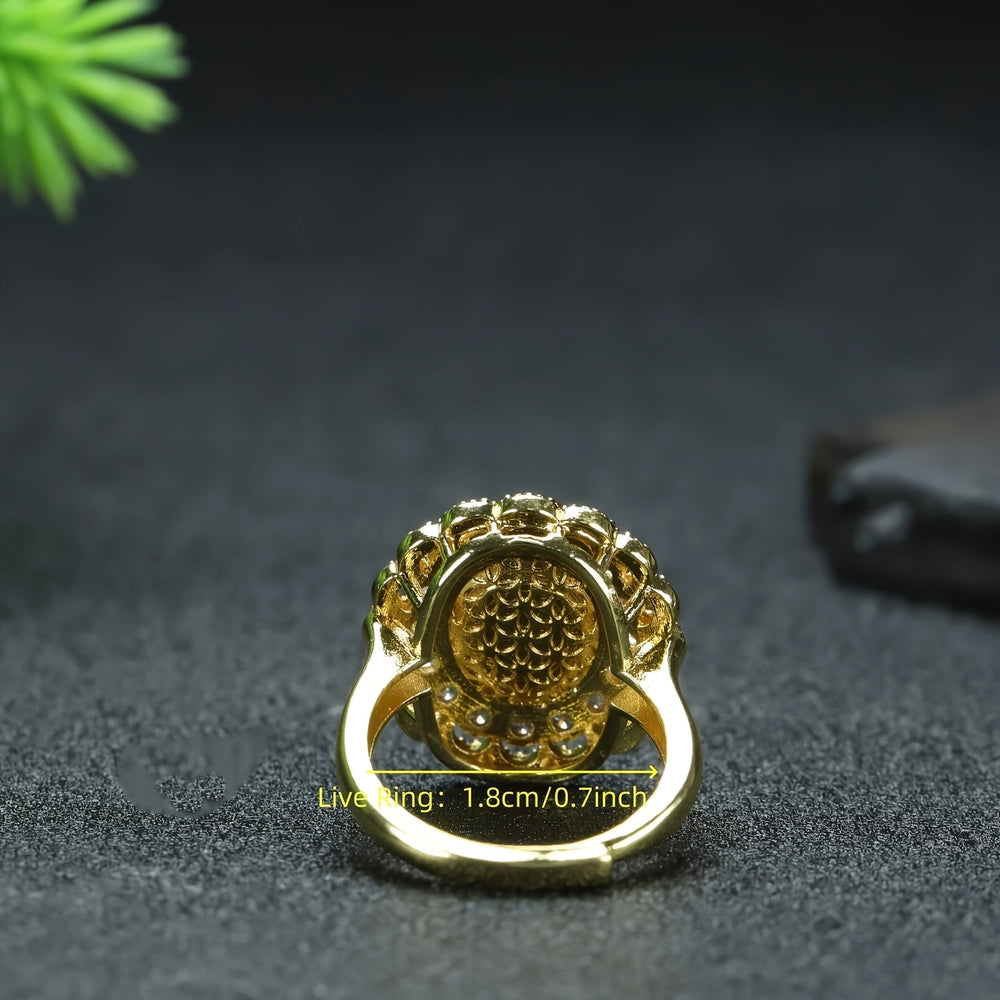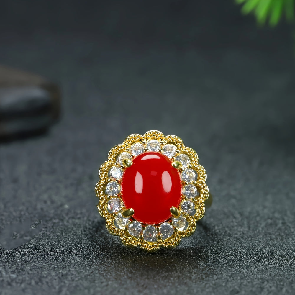 Step into a world of regal elegance and empowered energy with our Fashionable Court-Style Open Ring. This stunning piece captures the sophistication of royal jewelry, featuring a vibrant, oval-cut red agate stone set in an exquisite, gold-toned openwork design. Its court-style silhouette exudes confidence and timeless style, making it a perfect statement accessory for any occasion, from holiday celebrations to elevating your everyday look.