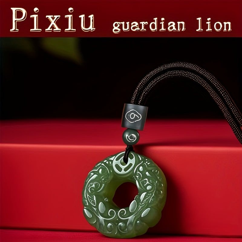 The Pixiu symbol represents protection, prosperity, and good fortune in Chinese culture, while the teal glass is believed to promote healing energy and emotional balance. This makes it both a fashionable accessory and a meaningful protective talisman.