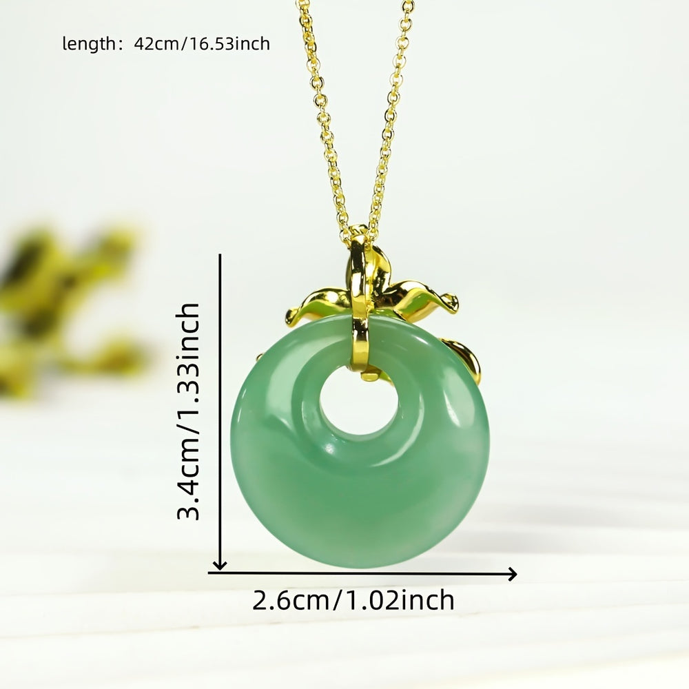 This elegant vintage jade pendant features a matte green simulated jade design with golden accents. The combination of natural stone energy and vintage aesthetics creates an elegant look perfect for daily wear or special occasions.