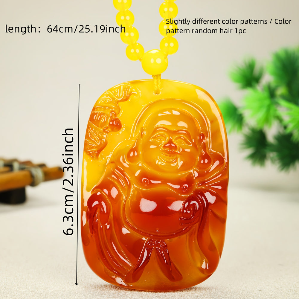 Elevate your style with our Elegant Vintage-Style Amber Character Pendant Necklace, a timeless piece that blends spiritual symbolism with vintage charm. Featuring a handcarved amber pendant with intricate character detailing, this necklace is paired with smooth yellow beads for a touch of brightness. Designed for versatility, it’s perfect for meditation, long sweater chains, or casual chic attire—adding both elegance and energetic support to your look.