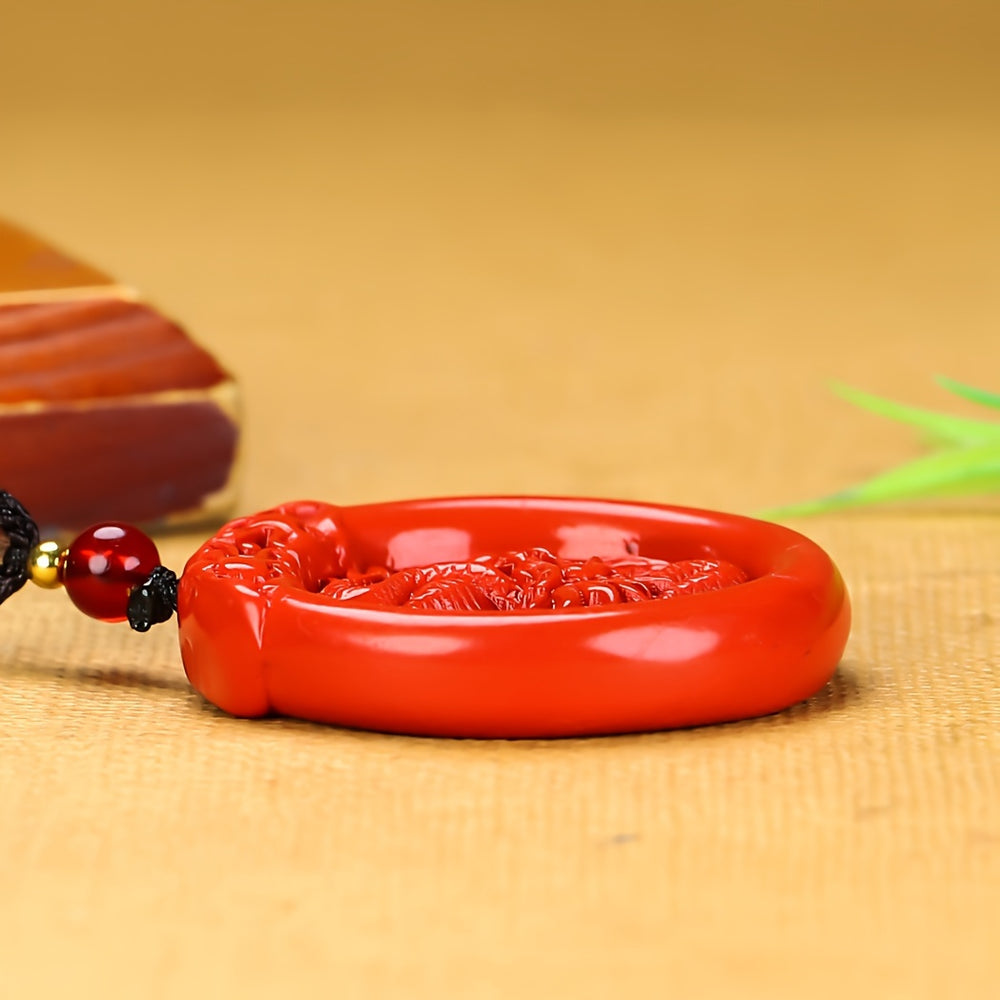 Emperor's Sand is a vibrant, grounding material known for its ability to enhance vitality and confidence. Its bold red hue symbolizes passion and luck, making it ideal for jewelry that supports energetic balance. The double-sided dragon engraving is a masterpiece of craftsmanship—each detail (scales, claws, eyes) is etched with precision, adding depth and meaning to the pendant.