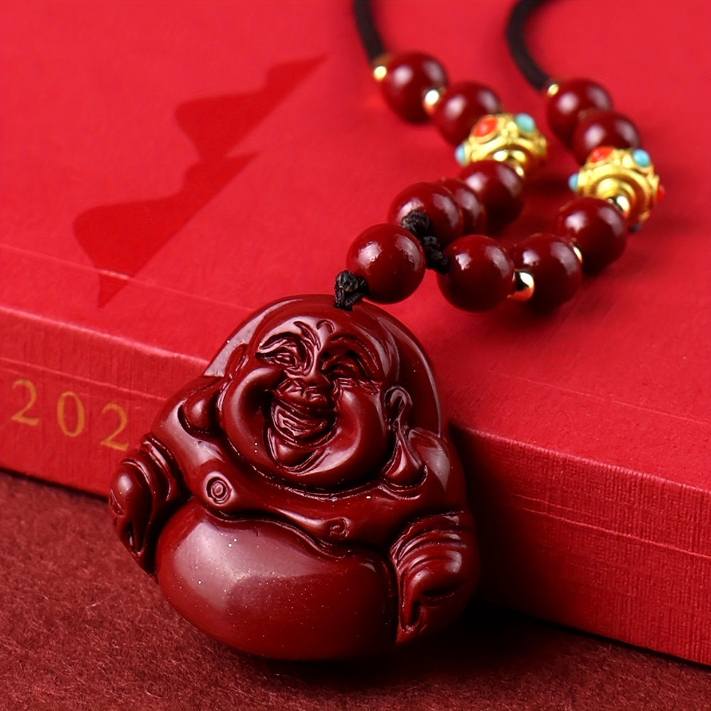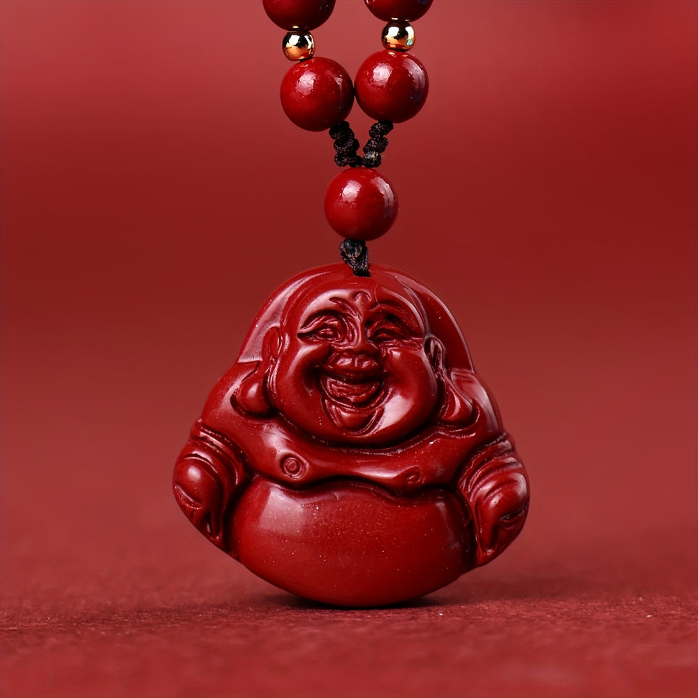 The Red Cinnabar Stone represents energy, vitality, and protective power, while the Smiling Buddha Pendant symbolizes happiness, contentment, and spiritual fulfillment. Together, these elements create a powerful symbol of balance, well-being, and spiritual growth.