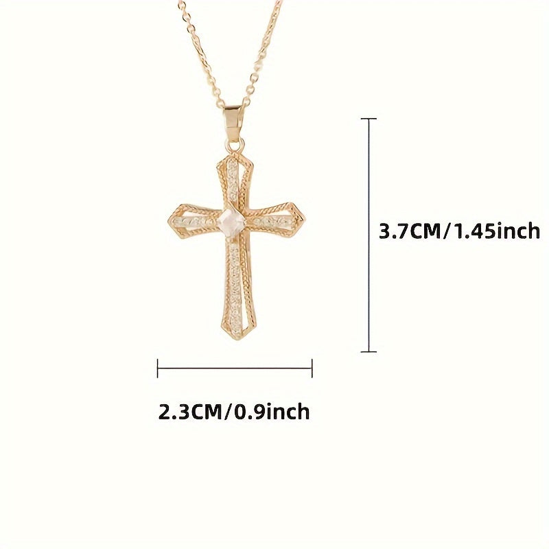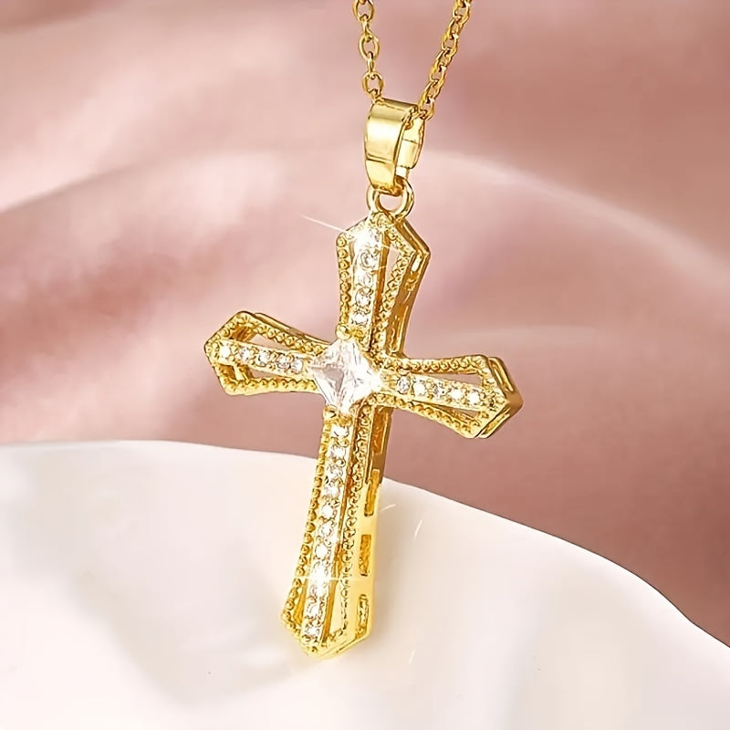 The cross is the universal symbol of Christian faith, representing Christ's sacrifice and victory over death. The golden tone symbolizes divine light, purity, and heavenly reward, while the synthetic zirconia stones represent the spiritual clarity and brilliance of faith. Together, they create a powerful religious symbol jewelry piece that serves both as a fashion accessory and a spiritual talisman.