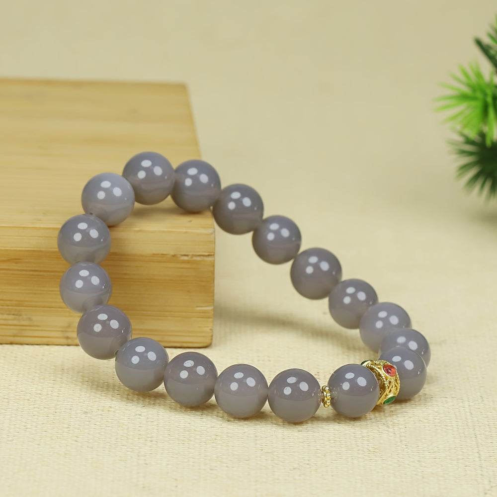 Embrace serene elegance and balanced energy with our Gray Agate Beaded Bracelet. This exquisite piece features a single circle of smooth, natural gray agate beads, accented with a charming smiling face charm. Designed for the modern woman, it's a versatile accessory that embodies minimalist style while offering profound energetic benefits for emotional harmony and inner peace.