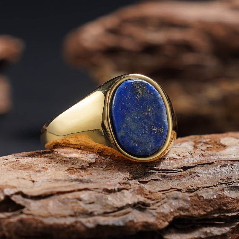 Elevate your style and spirit with our Handmade 18K Gold-Plated 316L Stainless Steel Elliptical Ring. This timeless piece features four natural stones—tiger's eye, black onyx, turquoise, and lapis lazuli—set in a polished 18K gold-plated band. The elliptical shape symbolizes unity and balance, while the gold plating adds a touch of luxury. Designed for unisex wear, it’s perfect for casual attire or spiritual practices.