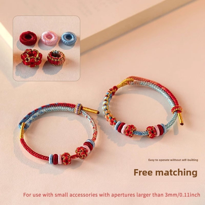 The peach knot design is a powerful symbol of eternal love and unbreakable bonds. In many cultures, it represents the intertwining of two souls and the strength of their connection. The vibrant red color symbolizes passion, vitality, and good fortune, while the golden beads represent divine blessings and spiritual illumination.