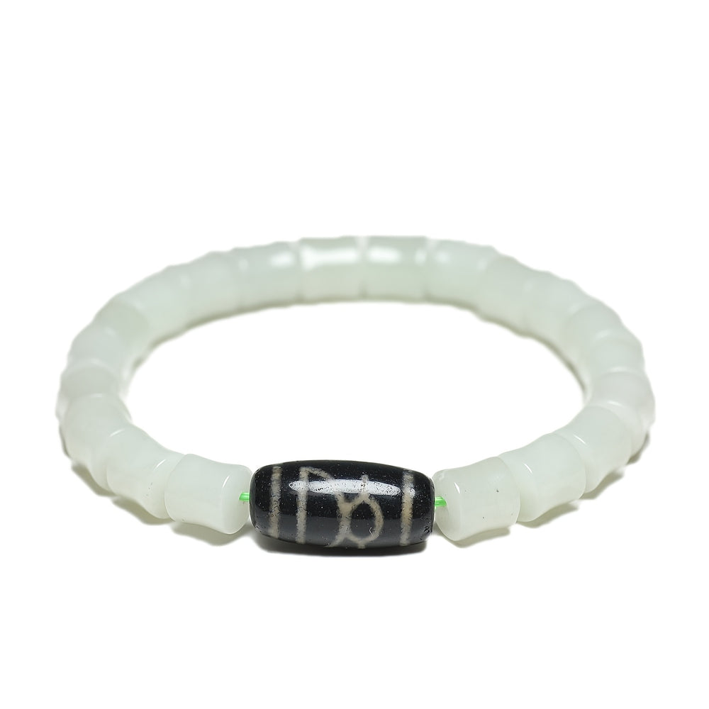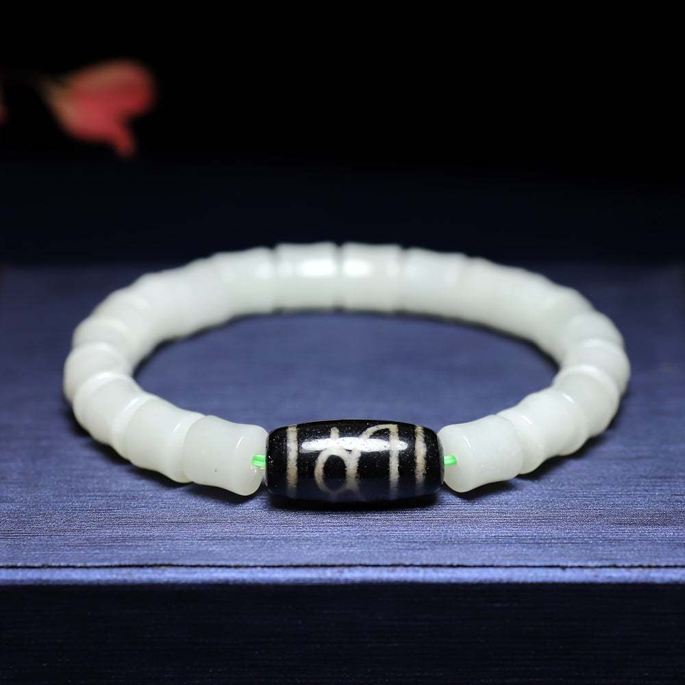 “The white jade and black agate with sky patterns promote harmony and spiritual connection, while the handcrafted design adds a touch of elegance - this bracelet is a must-have for anyone seeking both style and spiritual significance.”