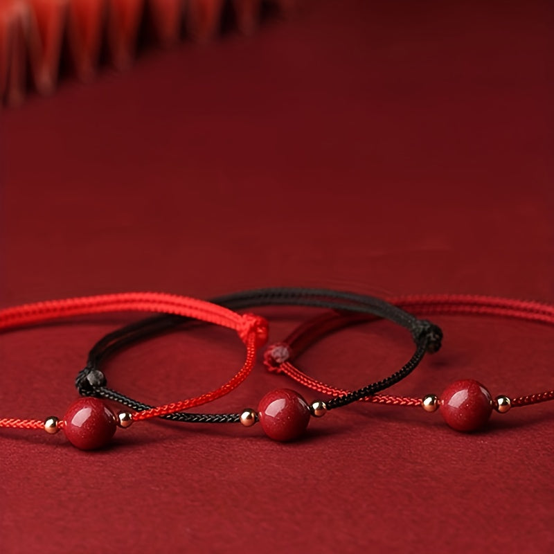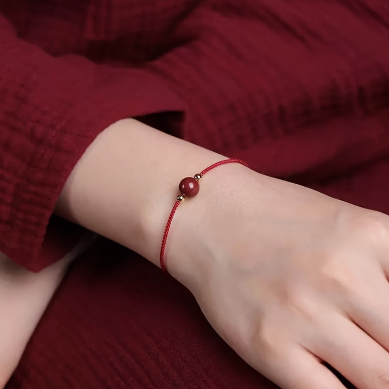 The red woven string represents vitality, protection, and energy flow in cultural traditions. It serves as a conduit for positive energy and spiritual connection. The golden beads symbolize wealth attraction and prosperity, while the deep red gemstones enhance protective qualities and spiritual shielding.