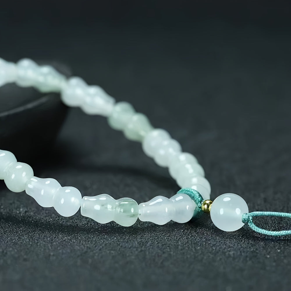 This Imitation Jade Gourd Bracelet features peaceful blue and white beads with a flowing tassel design. The blue beads symbolize calm and emotional balance, while the white beads represent purity and spiritual clarity. The tassel enhances harmony and smooth energy flow, creating a harmonious energy field that promotes emotional stability and mental peace.