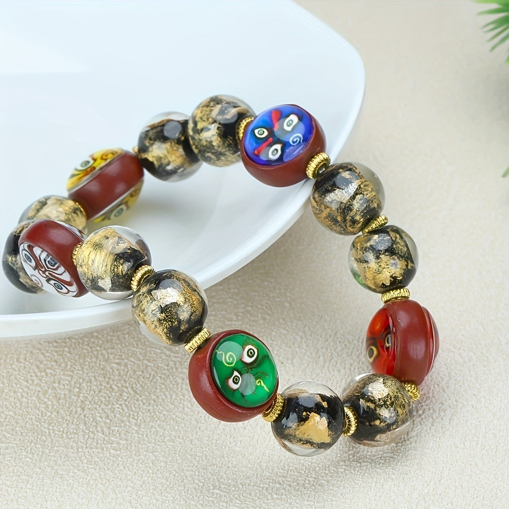 This bracelet is a symphony of symbolic energies. The Incense Ash Glaze beads are crafted from glass with a metallic gold foil interior, representing the alchemical process of burning away negativity to reveal spiritual wisdom and light. The central Zodiac Year Cinnabar bead is a powerful earth element stone, traditionally used to enhance vitality, provide protection, and bolster one's life force during their astrological year. The colorful "Five-Way God of Wealth" beads are vibrant amplifiers, calling upon the deities of prosperity from all directions.