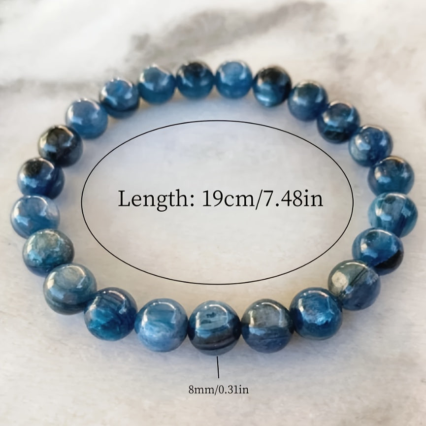 This infused spiritual calming bracelet features 8mm natural blue beads with cat's eye effect, perfect for third eye chakra alignment and inner peace. The 19cm length ensures comfortable wear for most wrists, making it ideal for daily meditation or special occasions.
