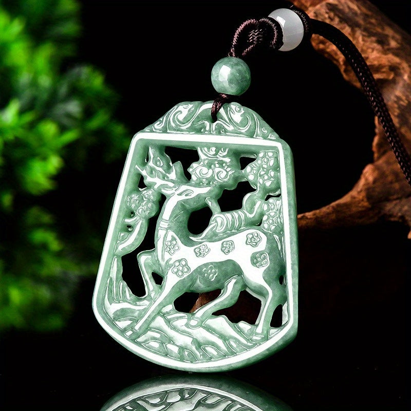 “The handcrafted deer design and natural jade create a unique and elegant pendant that stands out in any jewelry collection.”