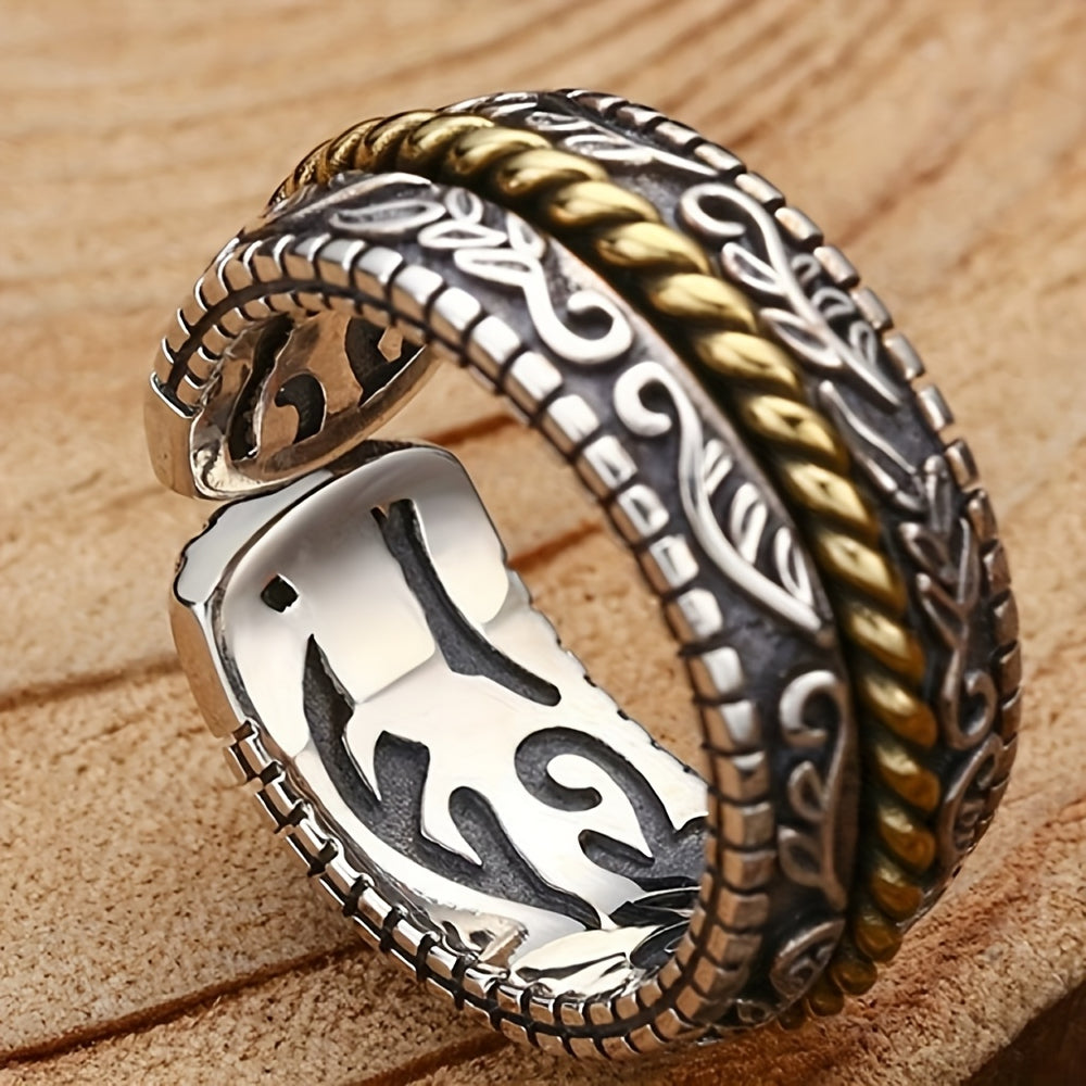 This adjustable silver plated ring for men combines retro punk style with spiritual energy. The hypoallergenic design features a grass pattern symbolizing growth and resilience, making it perfect for retro punk style ring enthusiasts seeking both style and protective energy.