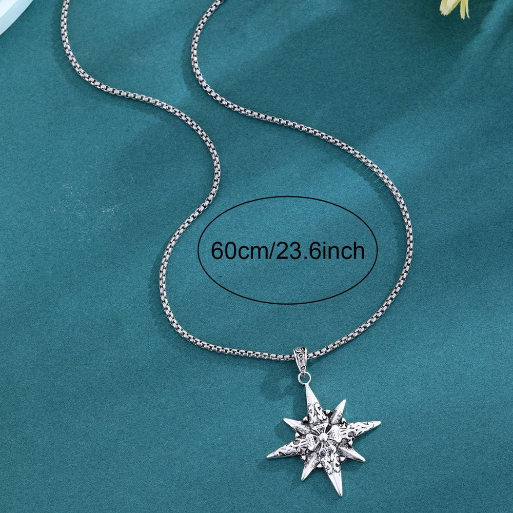 This Christmas snowflake compass star pendant features an 18K gold plated five-pointed clavicle chain with a durable non-magnetic design. The star-shaped pendant symbolizes guidance and protection, making it an ideal holiday season accessory and fashion gift for him. Perfect for autumn and winter wear, this necklace combines spiritual symbolism with modern style.