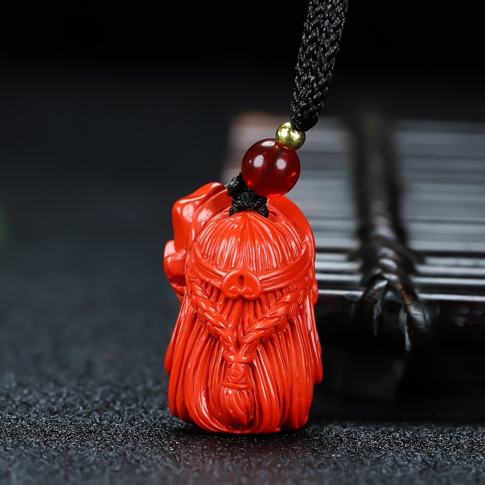 This Men's Cinnabar Pendant is a masterfully carved talisman featuring a striking dual-faced design. Crafted from natural, vibrant red cinnabar, it represents the powerful balance between compassion and strength, peace and protection. This ethnic-style accessory is not just a fashion statement but a potent spiritual tool designed to ground your energy, clear negativity, and foster inner harmony.