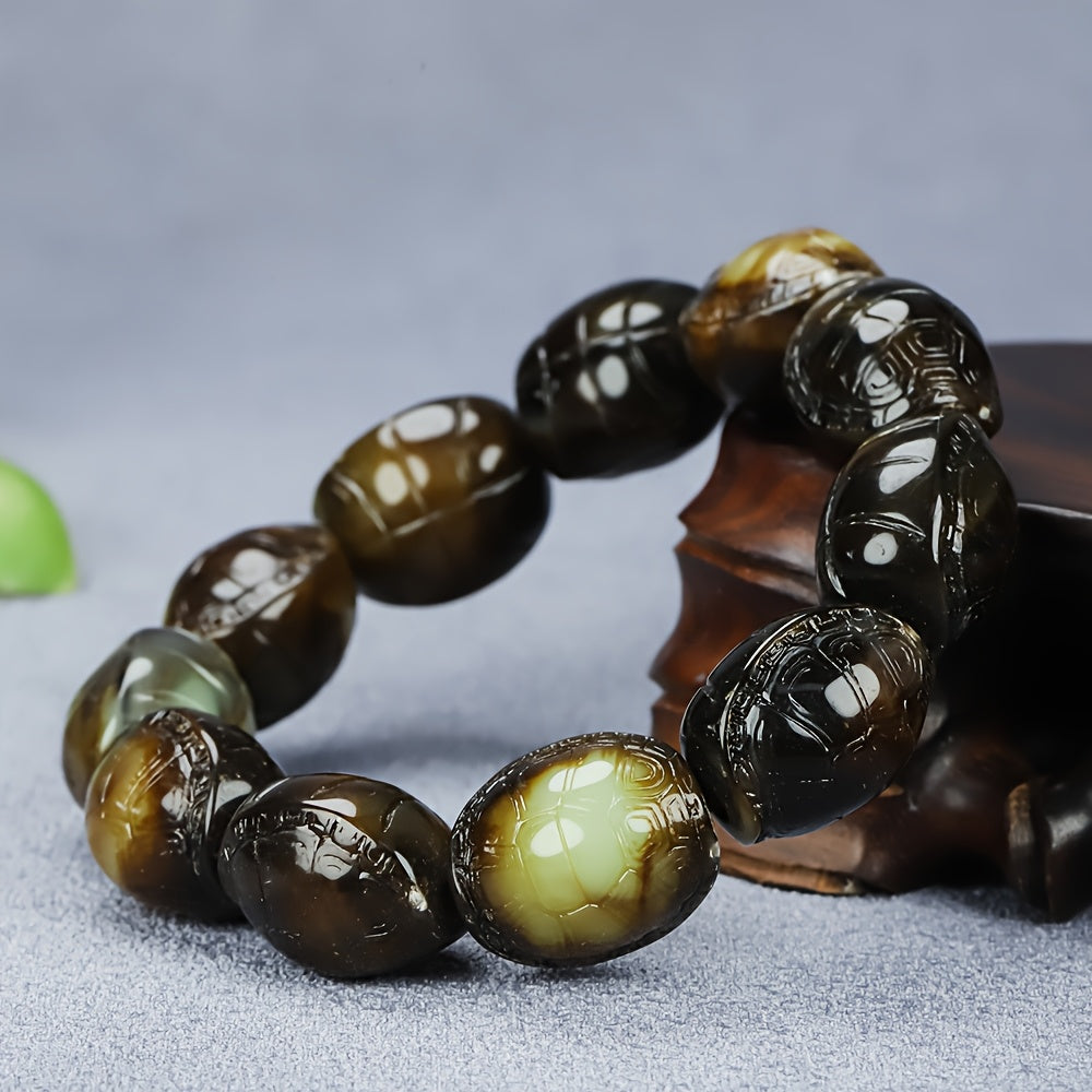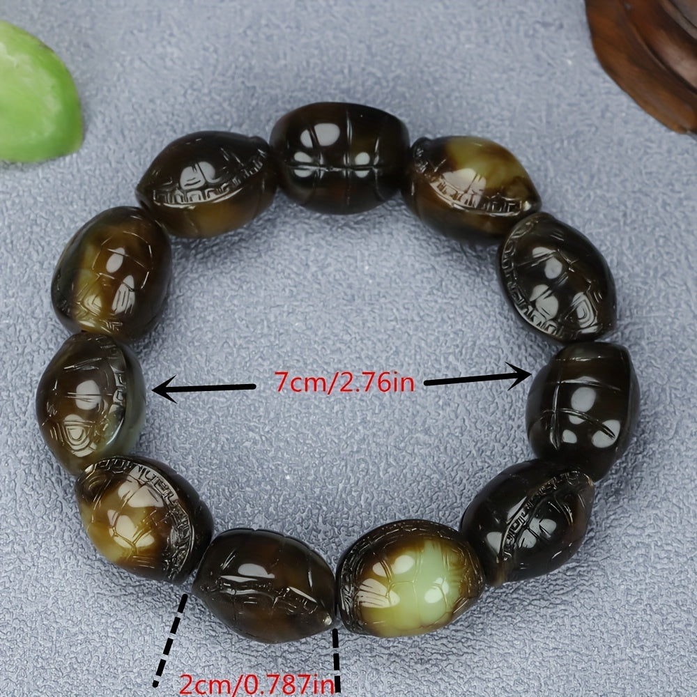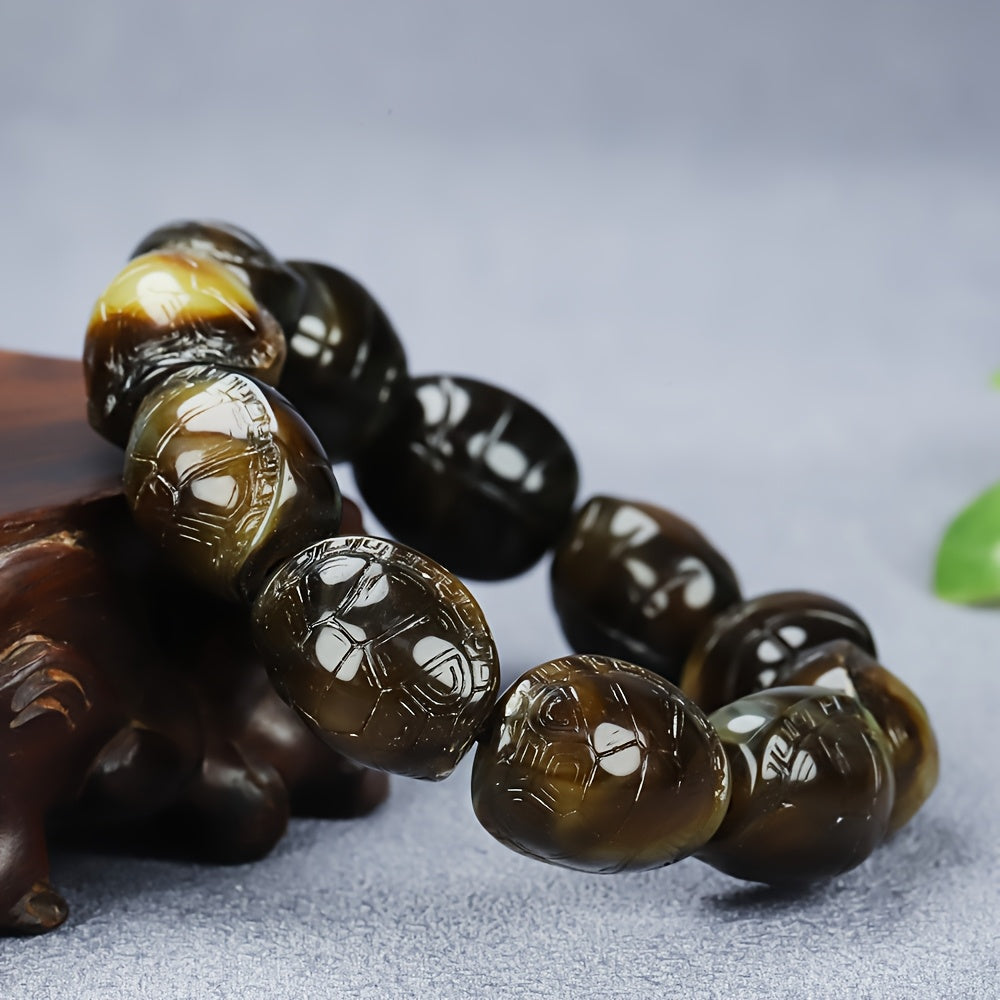 The turtle shell design is not just aesthetic; it carries deep cultural significance, representing wisdom, endurance, and a connection to nature. The brown resin beads are lightweight and durable, ensuring comfort for all-day wear, while the golden accents add a touch of elegance. Whether you’re dressing up for a special occasion or keeping it casual, this bracelet is a statement of strength and style.