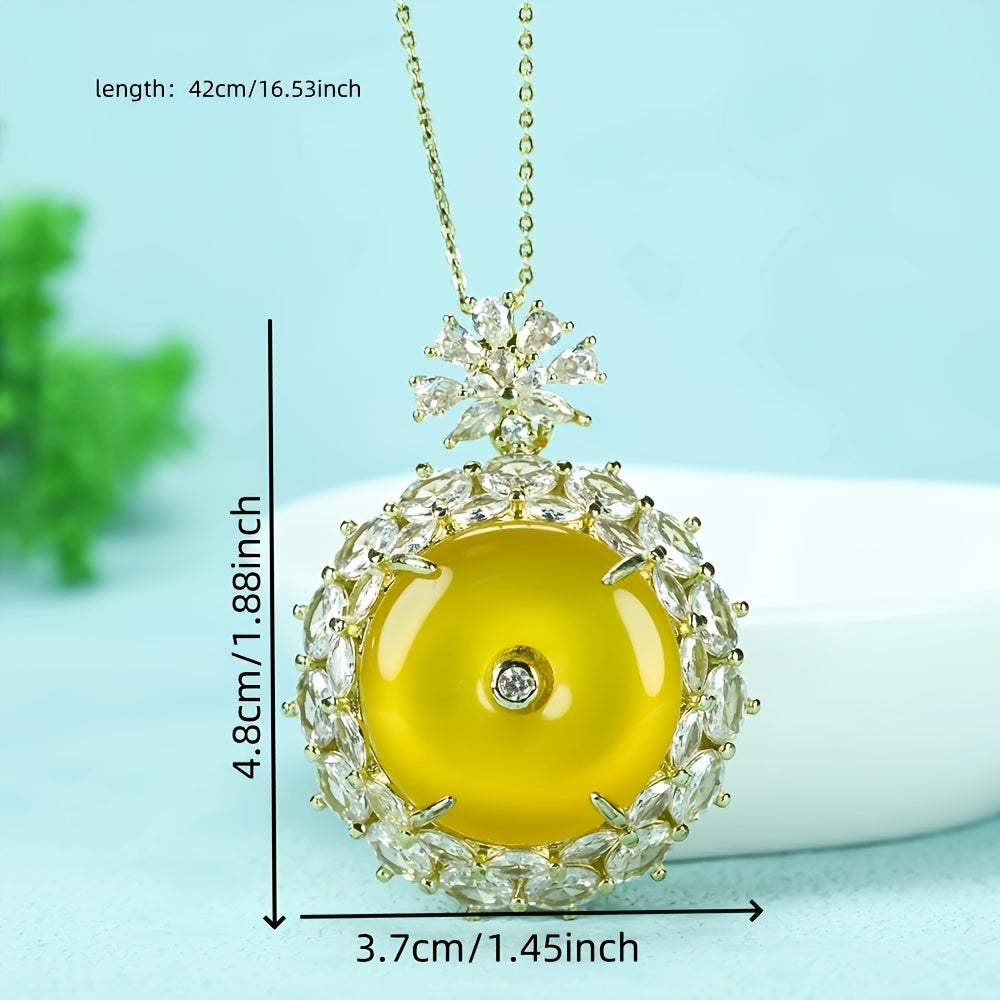 Elevate your style with our Men's Yellow Agate Pendant Necklace—a timeless piece that blends luxury, symbolism, and energetic benefits. Featuring a dome-shaped yellow agate pendant (4.8cm/1.88inch) surrounded by sparkling cubic zirconia accents and a durable gold-tone chain (42cm/16.53inch), this necklace is designed for men who value both fashion and well-being. The polished agate stone and classic gold chain make it versatile for casual outings or formal events, while the symbolic design adds depth to your accessory collection.