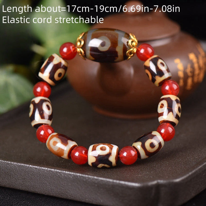 The unique eye pattern symbolizes divine protection and clarity of vision, making it ideal for meditation practices and spiritual growth. The elastic cord ensures a comfortable fit for all wrist sizes.